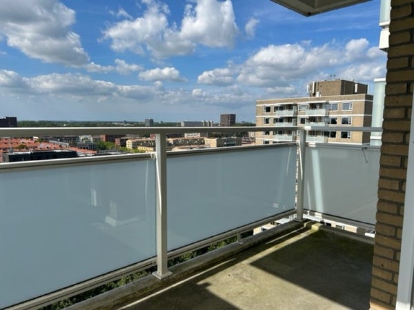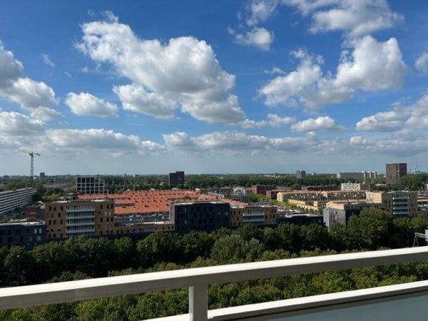 Dieses renovierte 2-Zimmer-Appartement ist zur Vermietung verfügbar und befindet sich im 8. Stock eines Komplexes mit zwei Wohnhochhäusern, die einen weiten Ausblick bieten. Es liegt günstig an der Autobahn A10, in der Nähe des Rembrandtparks, Geschäfte und öffentlicher Verkehrsmittel. Die Bewohner haben Zugang zu einem eigenen Parkplatz in der gesicherten Tiefgarage. Das Appartement verfügt über einen Eingang, einen Flur mit Toilette, ein geräumiges Wohnzimmer mit Balkon, eine hochwertige Küche mit Einbaugeräten, 1 Schlafzimmer und ein sauberes Badezimmer. Ein eigener Fahrradabstellraum gehört zum Appartement. Die Miete für den Parkplatz beträgt 130 Euro pro Monat. Es gelten Einkommensanforderungen von mindestens 3,75-mal der Nettokaltmiete, mit Bedingungen für Selbstständige.