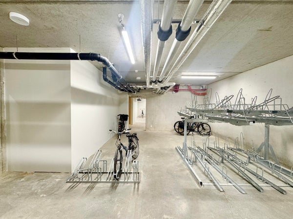 Das Gebäude wurde für komfortables und zukunftssicheres Wohnen entworfen und verfügt über Treppenhäuser und einen Aufzug. Im Keller befindet sich ein gemeinschaftlicher Fahrradabstellraum. Die Tiefgarage bietet die Möglichkeit, einen privaten Parkplatz für 140 € pro Monat zu mieten und ist mit Ladestationen für Elektrofahrzeuge ausgestattet. Ein zweiter Parkplatz kann auf Anfrage gemietet werden.