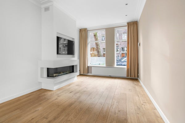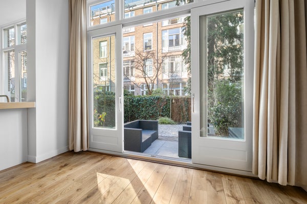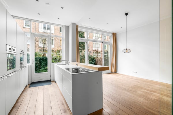 Fantastisch gepflegte Doppelwohnung im Erdgeschoss mit Garten, der jüngst vollständig gestrichen und möbliert wurde und über eine Klimaanlage verfügt. Diese Wohnung bietet alles, was das Leben im Stadtzentrum so attraktiv macht: hohe Decken, stilvolle Materialien, eine moderne Küche und sanitäre Anlagen sowie einen großen Wasch- und Abstellraum im Keller. Genießen Sie ein problemloses Leben in einer der grünsten Straßen von Oud Zuid, mit Geschäften, Parks und öffentlichen Verkehrsmitteln in der Nähe. Die Wohnung verfügt über eine geräumige Küche mit integrierten Geräten, ein luxuriöses Badezimmer mit begehbarer Dusche und Badewanne sowie Klimaanlage in allen Hauptzimmern. Französische Türen erweitern das gemütliche Wohnzimmer (mit Kamin) in den Garten mit seiner großzügigen Terrasse. Die Wohnung wird unmöbliert angeboten, die Wände und Böden wurden kürzlich gepflegt. Sofort verfügbar! NICHT ZUM TEILEN! Auf Wunsch des Vermieters kann diese Wohnung nicht an WG-Bewohner vermietet werden. WG-Bewohner sind Studenten und/oder Freunde, die die Wohnung gemeinsam mieten. Berufstätige Singles, Paare oder kleine Familien sind berechtigt. AUFTEILUNG Erdgeschoss: Eingang, Flur, WC, Wohnraum mit offener Küche und integrierten Geräten sowie Kamin, Schiebetüren zum Garten (ca. 49 m² nach nordwesten ausgerichtet); Erste Etage: Flur, 3 Schlafzimmer, davon 1 mit Einbauschrank und 1 mit Balkon, Badezimmer mit Badewanne, begehbarer Dusche, WC und Doppelwaschbecken; Keller: Abstellraum, Heizungsanlage, Waschküche mit Waschmaschine und Trockner. LAGE In der Nähe des Vondelparks, Museumplein und Van Baerlestraat in Oud Zuid, mit allen Annehmlichkeiten in der Nähe. Das Geschäftsviertel Zuidas ist gut erreichbar, ebenso wie das Grachtenviertel und das Jordaan-Viertel. Gemütliche Cafés und angesagte Restaurants gibt es im Überfluss. Öffentliche Verkehrsmittel und Hauptstraßen sind in der Nähe, und über die S108 gelangen Sie schnell zur A-10 Auffahrt. WARTUNG Die Wohnung ist Teil eines gut gepflegten, klassischen Gebäudes, das aus 3 Etagenwohnungen besteht. Die Anlage wird von der Wohnungseigentümergemeinschaft (VvE) verwaltet. Alle Installationen im Haus entsprechen modernen Standards. BESONDERE MERKMALE - Nicht für Wohngemeinschaften geeignet! - Miete ohne Nebenkosten; - Kaution nach Vereinbarung; - Mieter muss sich an die Hausordnung der VVE halten; - Nebenkosten der VVE werden vom Vermieter getragen; - Minimale Mietdauer beträgt 1 Jahr.