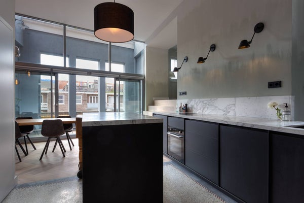 Spektakuläre Wohnung im Hoofddorppleinbuurt in Amsterdam, 115 m², zwei Schlafzimmer und eine Dachterrasse in einem wunderschönen denkmalgeschützten Gebäude.