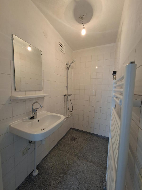 Gemeinsamer Eingang mit Treppenhaus. Zugang zu den Schlafzimmer(n), separatem WC, Badezimmer, Abstellraum und Wohnbereich mit offener Küche über den Flur. Die Küche wurde kürzlich renoviert.