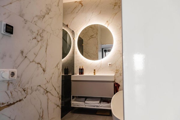 Das moderne Badezimmer ist hochwertig ausgestattet, strahlt Luxus und Komfort aus und ist mit einer freistehenden Badewanne sowie einer geräumigen Dusche ausgestattet. Hier finden Sie die perfekte Balance zwischen Entspannung und Praktikabilität. Darüber hinaus verfügt die Wohnung über einen separaten großen Abstellraum mit einer Waschmaschine und einem Trockner, was für ein organisiertes und aufgeräumtes Zuhause sorgt.