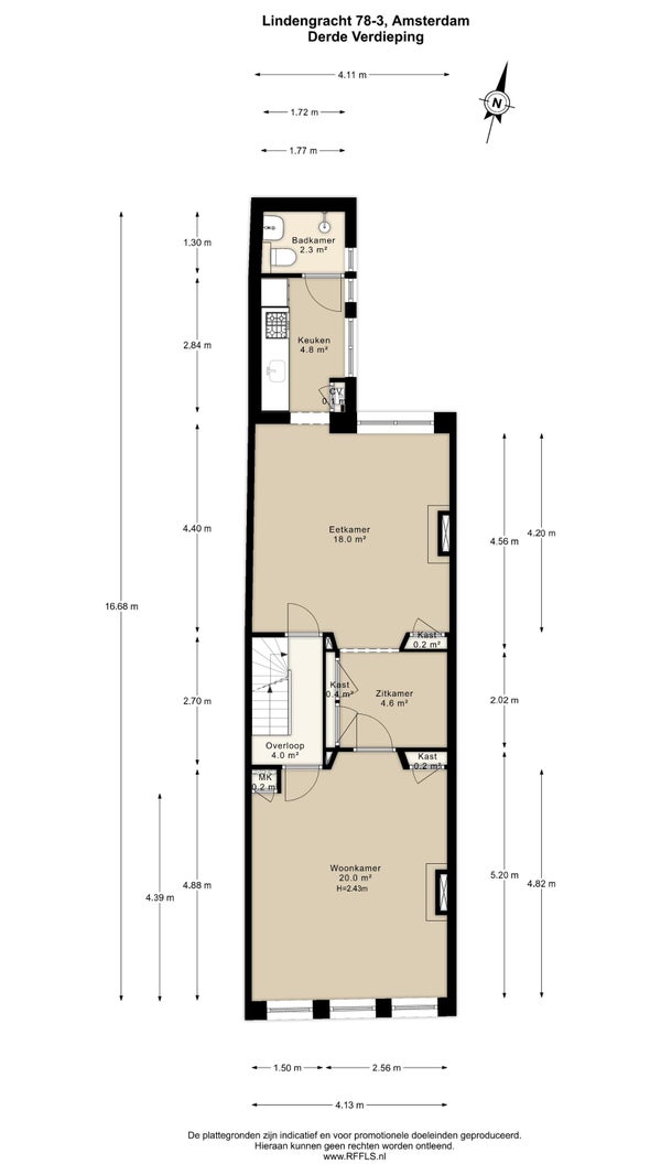 Zur Miete: Etagenwohnung Lindengracht 78 3 in Amsterdam