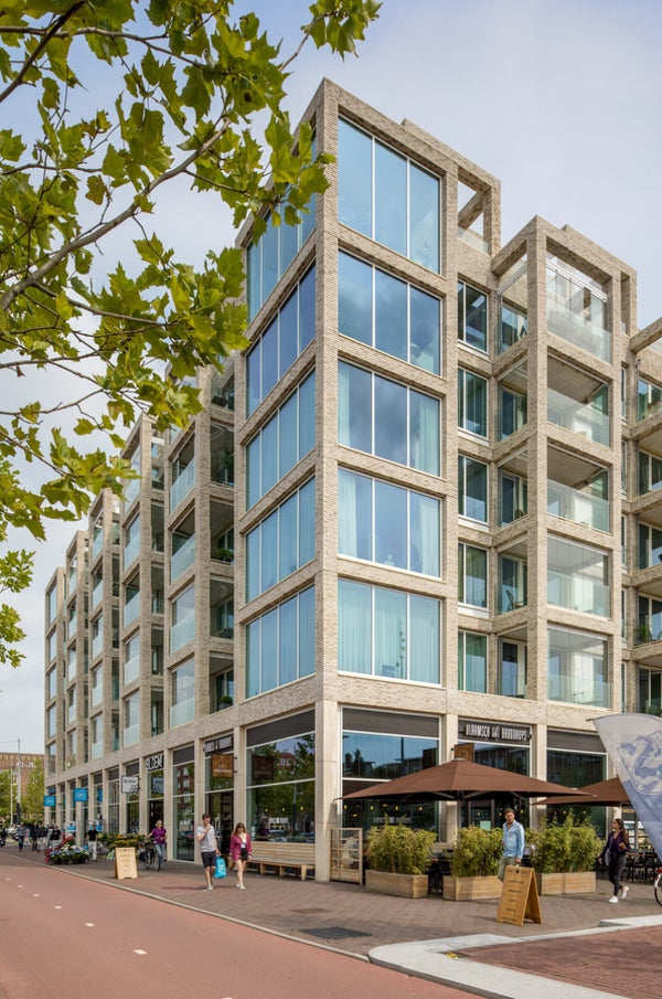 Helles und luftiges Apartment (99m²) im obersten Stockwerk (8) mit schönem Blick auf die westliche Skyline von Amsterdam und die Amstel. Großes Wohnzimmer mit offener Küche und Wintergarten, der in einem Meer von Licht badet.