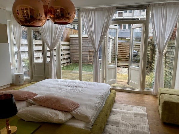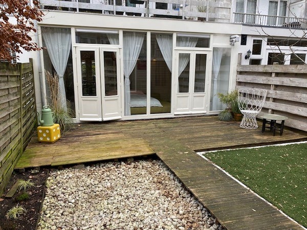 Diese geräumige und gepflegte 2-Zimmer-Wohnung befindet sich im Erdgeschoss und verfügt über einen Garten und einen Abstellraum. Sie ist sofort verfügbar zur Miete und fast vollständig möbliert. Die Wohnung liegt im beliebten Stadtteil Baarsjes in Amsterdam, die Crynssenstraat bietet eine ruhige Atmosphäre mit Vondelpark und Rembrandtpark in Gehweite. Die Immobilie ist gut mit dem Auto über die A-10 und mit öffentlichen Verkehrsmitteln (Straßenbahnlinien 1, 7, 17 und Bus 15) erreichbar. Es gibt ausreichend Parkmöglichkeiten. Die Aufteilung umfasst einen Eingangsbereich, ein helles Wohnzimmer mit offener Küche, ein Badezimmer mit Badewanne und ein geräumiges Schlafzimmer mit Terrassentüren zum Garten. Die Miete beträgt 2.100 € zzgl. Gas/Wasser/Strom, ohne Wohnsitzanforderungen.