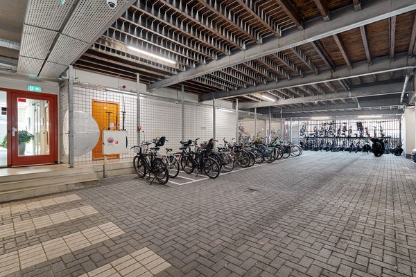 Im Erdgeschoss verfügt die Wohnung über einen eigenen Parkplatz. Fahrräder können im gemeinsamen Fahrradkeller abgestellt werden.