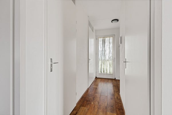 Über den zentralen Eingang im Erdgeschoss gelangen Sie mit dem Aufzug in die 4. Etage. Am Ende des Flurs befindet sich die Wohnung. Beim Betreten gelangen Sie in die Diele, die Zugang zu den verschiedenen Räumen bietet.