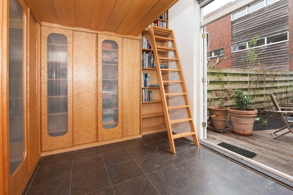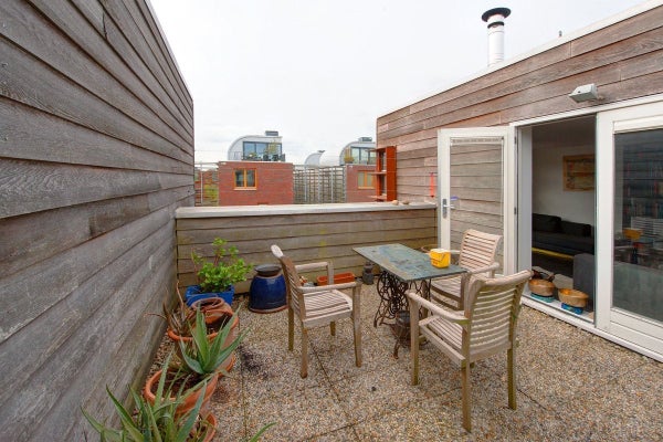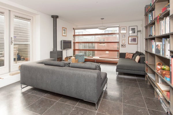 Ein wunderschönes multifunktionales UNMÖBLIERTES Haus von 140 m2 mit Parkplatz (Carport), Abstellraum und einer Dachterrasse (ca. 16 m2) nach Süden. Die Immobilie befindet sich an einer schönen Lage auf der Halbinsel Sporenburg im ehemaligen Ertshaven. Hinter dem Haus liegt ein großer Garten, einzigartig im inneren Amsterdam. Das Haus wurde 1996 erbaut und vom berühmten Büro Neutelings Riedijk Architects entworfen. Erdgeschoss: Über den abschließbaren Carport gelangen Sie ins Haus und zum Hauswirtschaftsraum mit Waschmaschine und Trockneranschluss. Vom Flur aus, mit Treppe zum 1. Stock, Zugang zum hinteren Schlafzimmer/Gartenraum und luxuriösen Badezimmer mit Dusche, Doppelwaschbecken, Toilette, Bidet und Handtuchheizkörper. Das Erdgeschoss hat eine Raumhöhe von 3,25 Metern, das Schlafzimmer/Gartenzimmer hat Zugang zum gepflegten Garten. Der Garten besteht aus einer Terrasse aus Hartholz, Pflanzenkästen und einer Kiesfläche. 1. Stock: Das geräumige Schlafzimmer ist mit einem eigenen Badezimmer, einschließlich WC, Waschbecken und Dusche ausgestattet. 2. Stock: Die Wohnfläche ist großzügig: 80 m2 mit einer Dachterrasse von 16 m2 (nach Süden ausgerichtet). Der große offene Küchenbereich ist äußerst hell und angenehm. Das Stockwerk ist in verschiedene Bereiche unterteilt, das Wohnzimmer befindet sich an der Vorderseite und bietet einen Blick auf das Wasser.