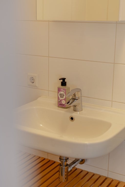 Das Badezimmer auf dieser Etage ist ordentlich ausgestattet und mit einer Dusche, einem Waschbecken und einer Toilette ausgestattet.