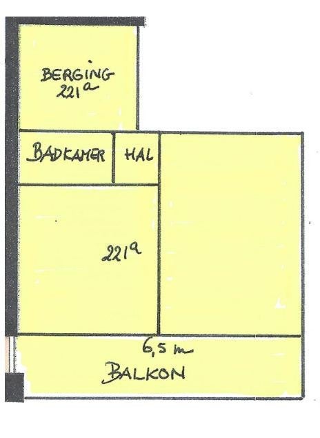 Die Fläche beträgt 33m2, der Abstellraum etwa 7m2. Der Balkon ist 8m2 groß.