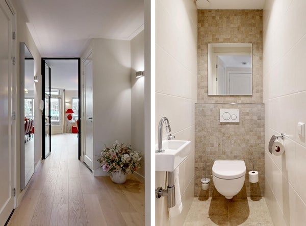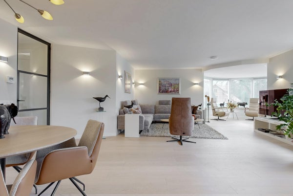 Dieses geräumige und luxuriöse Drei-Zimmer-Apartment im Herzen von Bilthoven bietet eine einzigartige Gelegenheit für komfortables Wohnen. Im ersten Stock gelegen, bietet es einen wunderschönen Blick auf den Vinkenplein. Das 57 m² große Wohnzimmer verfügt über ein großes Wintergarten, und die luxuriöse offene Küche ist mit hochwertigen Miele-Geräten ausgestattet. Sie haben zwei Schlafzimmer, ein stilvolles Bad und zwei Balkone sowie eine private Dachterrasse. Für zusätzlichen Komfort sorgen Klimaanlage, elektrische Jalousien und eine Wärmepumpe. Mit einer Wohnfläche von 107 m² und einem Abstellraum im Gebäude ist ausreichend Platz vorhanden. Das Apartment liegt zentral mit Geschäften und Dienstleistungen in der Nähe, und der NS-Bahnhof ist zu Fuß erreichbar. Miete beträgt 2.950 €, zzgl. Nebenkosten von 250 €.