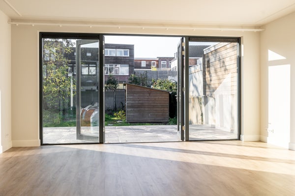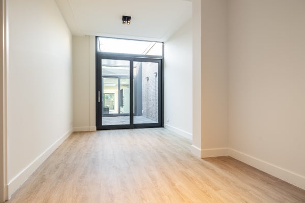 Das Wohnzimmer befindet sich auf der ruhigen Rückseite des Hauses. Über die doppelten Türen an der Rückseite gelangt man auf die Terrasse und in den privaten Garten mit satten 113 m². Auch die Patio ist vom Wohnzimmer aus zugänglich.