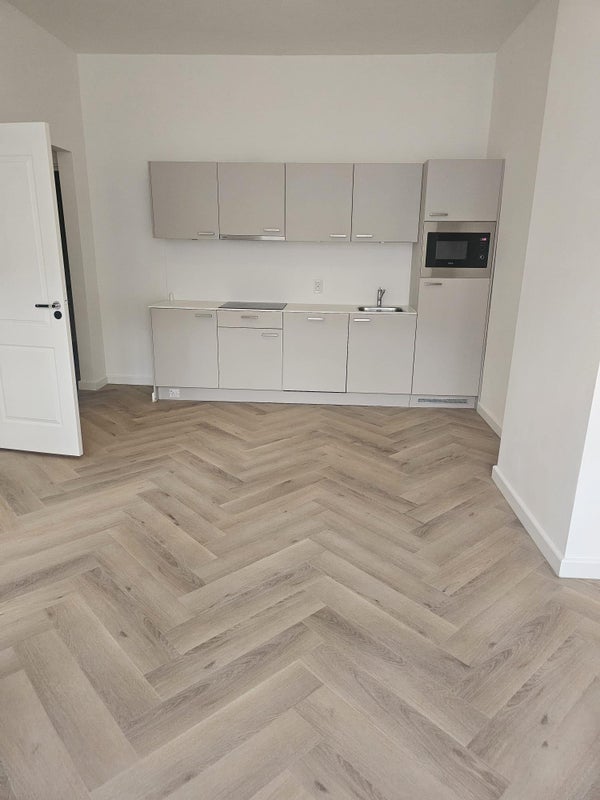Über den gemeinsamen Eingang auf Straßenniveau betreten Sie die Wohnung im ersten Stock durch die private Haustür. Sie gelangen in die Diele, die Zugang zu allen Zimmern bietet. Das geräumige Wohnzimmer mit originaler Schiebetrennung (ca. 5,50x3,75m + 2,85x2,50m) verfügt über eine moderne offene Küche, die mit einem Kühlschrank, einem 4-Flammen-Gaskochfeld, einem Kombi-Mikrowellenofen, einem Dunstabzug und einem Anschluss für die Waschmaschine ausgestattet ist. Das herrlich helle Schlafzimmer (ca. 3,10x2,15m) bietet Zugang zu einem gemütlichen Außenbereich mit Abstellraum. Darüber hinaus ist dieses schöne Appartement mit einem modernen Badezimmer ausgestattet, das eine Dusche, ein Waschbecken, eine Toilette und einen Handtuchheizkörper umfasst!