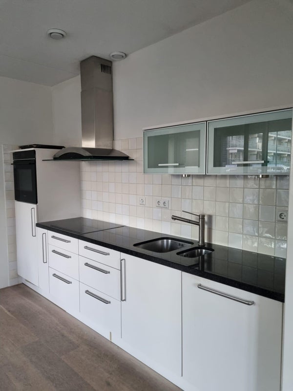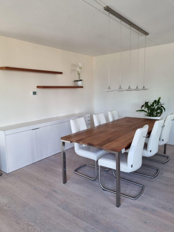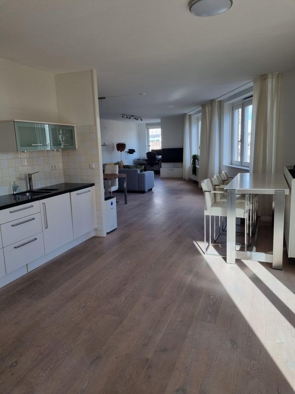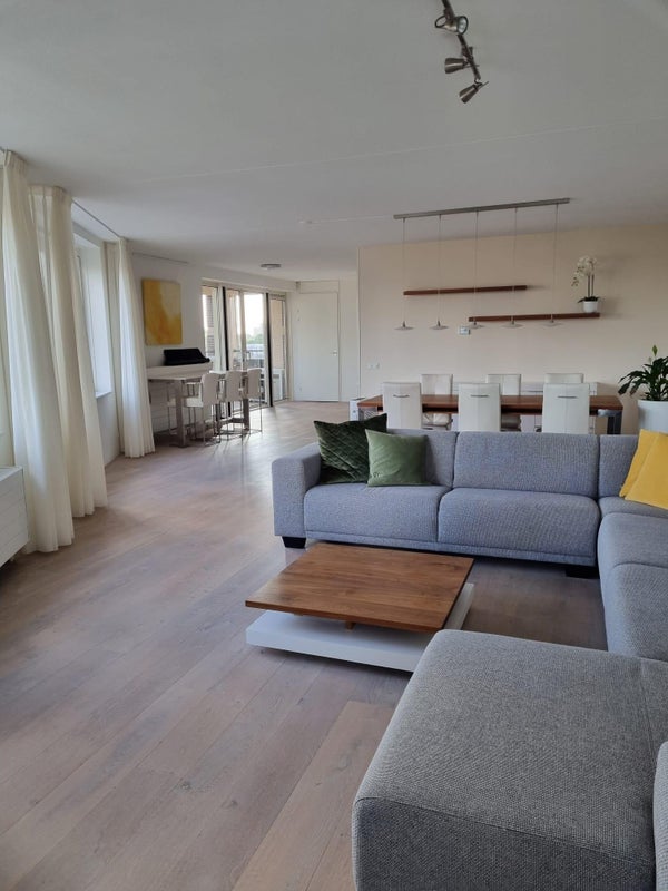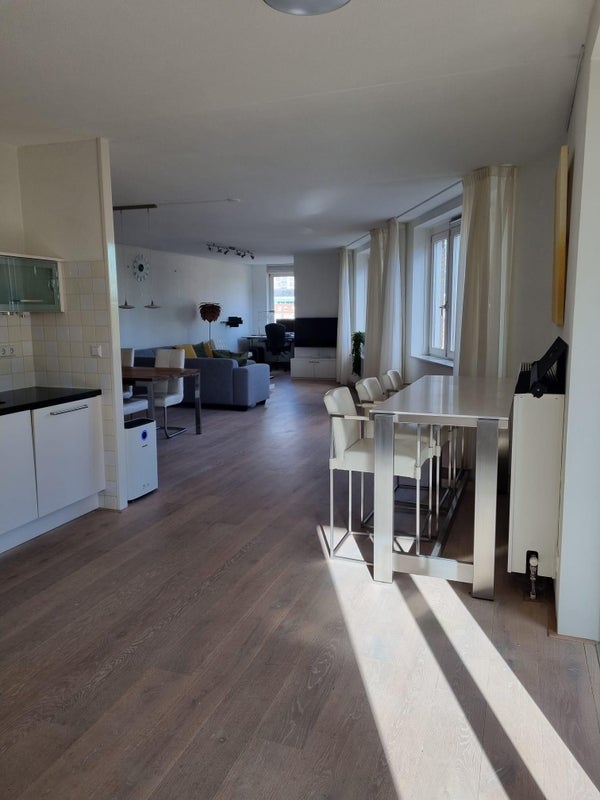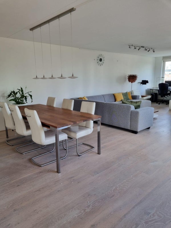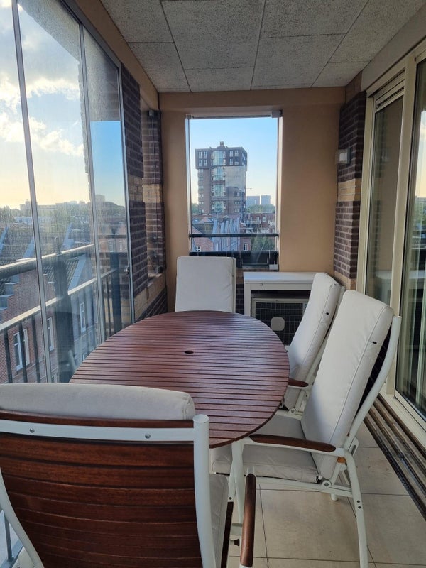 Hübsche, stilvolle möblierte Stadtwohnung von ca. 120 m2 mit herrlichem Blick über das Zentrum von Den Haag. Diese Wohnung verfügt über 2 Schlafzimmer, eine großzügige überdachte Terrasse von ca. 11 m2 mit freiem Blick und 1 Stellplatz in der hauseigenen Tiefgarage. Nur 7 Gehminuten vom Hauptbahnhof entfernt mit allen Verbindungen zu Zug, Tram und Bus. Gute Anbindungen an die Autobahnen und nicht weit von den Geschäften für den täglichen Bedarf.