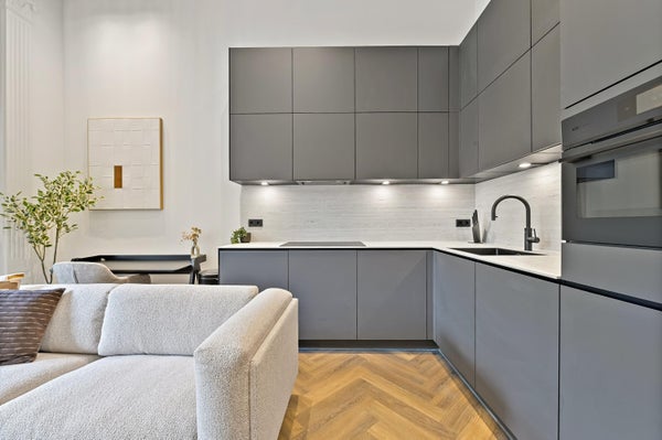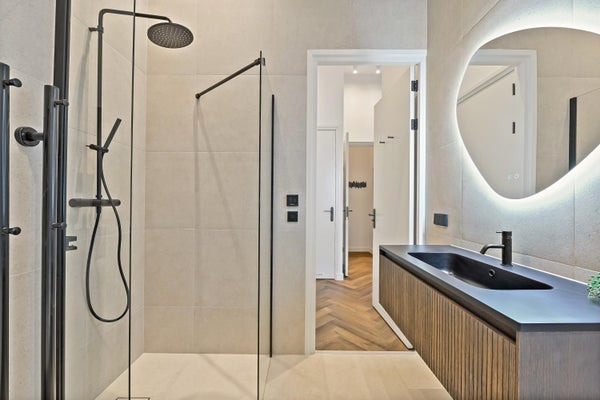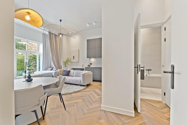 Dieses schöne Studio-Apartment befindet sich im Erdgeschoss. Der Eingang ist über die zentrale Eingangstür des beeindruckenden Gebäudes zugänglich. Eingangstür mit Flur. Zugang zum fantastisch renovierten Wohnzimmer mit Fischgrätboden und offener Küche. Die Wohnung ist durch die Deckenhöhe und die Fensterflächen hell und luxuriös. Die Küche ist mit allem ausgestattet, was man braucht, denken Sie an einen Geschirrspüler, ein Induktionskochfeld, eine Kühl-Gefrier-Kombination, einen Quooker für sofort kochendes Wasser und ausreichend Stauraum. Über das Wohn- und Esszimmer Zugang zum prächtigen Badezimmer mit Badewanne, begehbarer Dusche, Waschbecken mit Möbeln, Spiegel mit Beleuchtung und Heizung sowie zwei Handtuchheizkörper. Separates WC im gleichen Stil wie das Badezimmer. Gemütlicher Schlafbereich an der ruhigen Rückseite des Gebäudes von ca. 9m2. Geräumiger Garten von ca. 16m2 in Westlage.