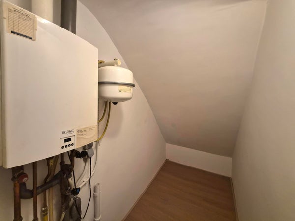 Die herrlich helle Küche ist ausgestattet mit einem 4-Flammen-Gaskocher, Geschirrspüler, Kühlschrank mit kleinem Gefrierfach und Kombi-Mikrowelle. Das Schlafzimmer von ca. 3,44 x 3,24 befindet sich auf der Rückseite der Wohnung mit einem separaten Abstellraum von ca. 1,10 x 1,87.