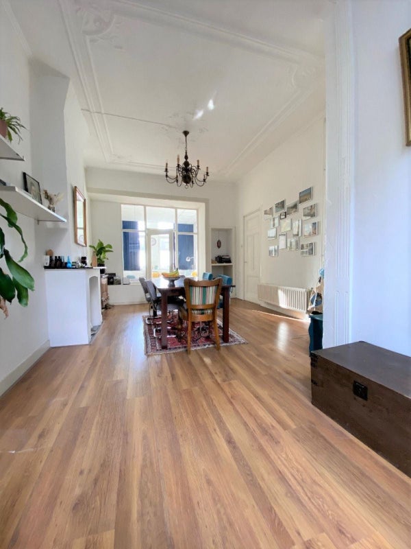 Die Wohnung verfügt über 4 Zimmer, darunter 3 Schlafzimmer, von denen 2 auf der Rückseite des Hauses liegen, eine saubere Küche, eine separte Toilette und ein wunderschönes Wohn-/Esszimmer an der Vorderseite des Hauses.