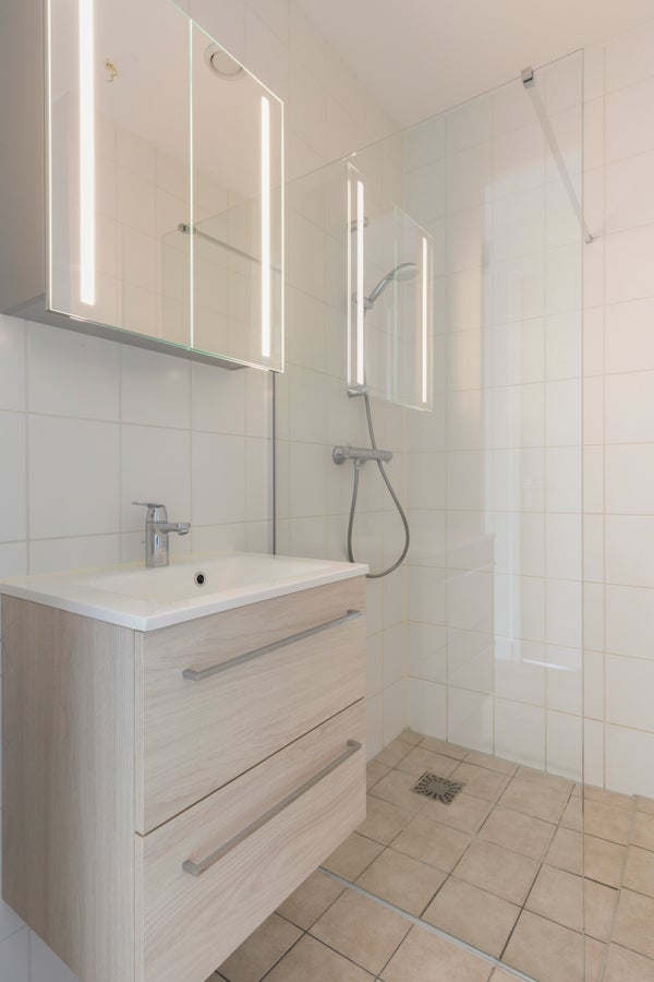 Das Apartment befindet sich in der fünften Etage und ist Teil von Caland Dock, das über einen gemeinsamen Fahrradabstellraum im Erdgeschoss und einen Hausmeister verfügt. Die Wohnung wird mit einem schönen PVC-Boden übergeben.