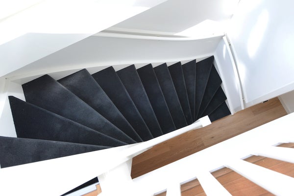 Eingang auf Straßenniveau. Treppe zum ersten und zweiten Stock.