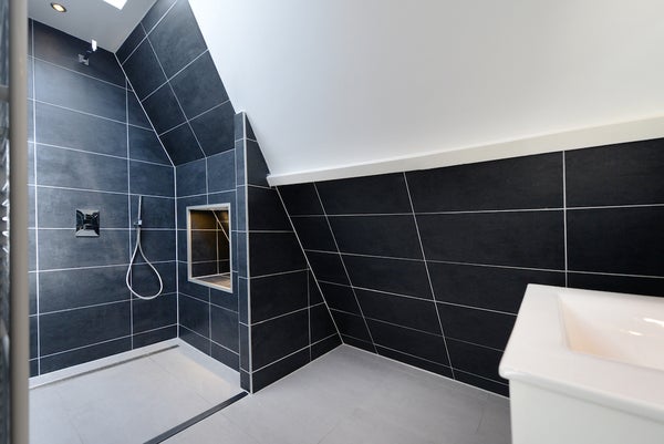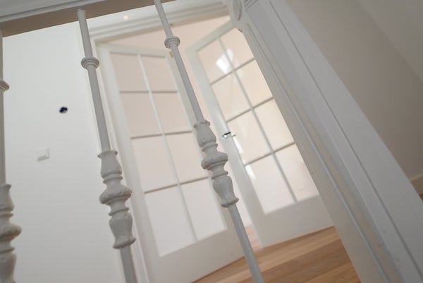 Treppe. Zugang zur geräumigen Diele mit viel Tageslicht. Separates zweites WC. Zugang zu drei Schlafzimmern von ca. 18 m2, 11 m2 und 10 m2 und dem modernen, geräumigen Badezimmer mit großer begehbarer Dusche, Tageslicht, Heizung, Waschbecken usw.