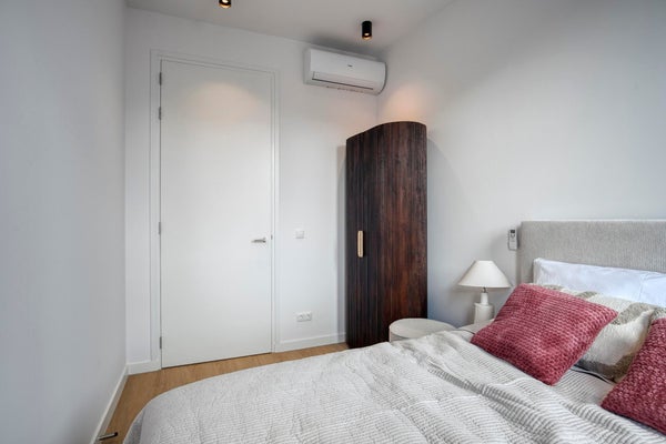 Die beiden geräumigen Schlafzimmer, die sich an der Vorderseite des Gebäudes befinden, sind mit einem Doppelbett, einem Kleiderschrank, einem Smart-TV und Klimaanlage (Kühlen + Heizen) ausgestattet.