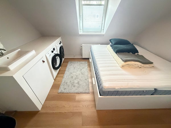 - Schlafzimmer 3 von ca. 12 m² auf der Vorderseite mit Dachfenster und Einbauschrank für die Waschmaschine und den Trockner.