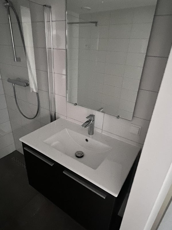 - Vollständig neue Sanitäranlagen, einschließlich Fliesen, Glasduschwand und Badezimmermöbel.