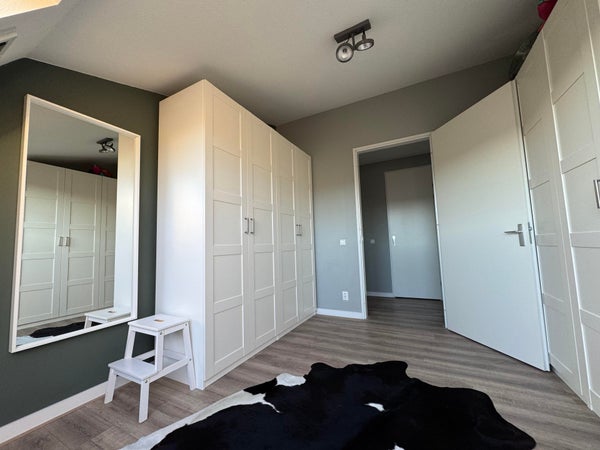 Die Wohnung verfügt über zwei geräumige Schlafzimmer mit großen Kleiderschränken. Angrenzend an das Schlafzimmer befindet sich ein Abstellraum, in dem sich auch die Waschmaschine und der Trockner befinden.