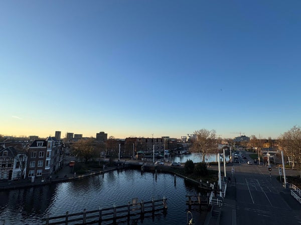 An die Küche grenzt der Balkon mit unverbautem Blick auf die Gouwe, wo Sie nachmittags die Sonne genießen können.