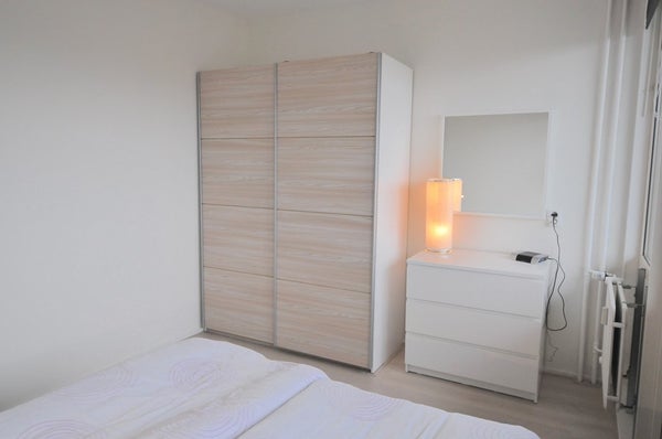 Einteilung; Erdgeschoss; doppelte gemeinsame abgeschlossene Eingang, beide mit Treppenhaus und Aufzug. Die Wohnung befindet sich im 5. Stock; Flur grenzt an die Küche, 2 Schlafzimmer (3,40x3,80 und 3,00x3,80), modernes separates WC und Wohnzimmer (3,80x5,60). Es ist mit einem Laminatboden und Kunststoffrahmen mit Doppelverglasung ausgestattet. Vom Wohnzimmer aus gelangen Sie auf den Balkon, auf dem Sie den ganzen Tag die Sonne genießen können. Großes Schlafzimmer an der Vorderseite der Wohnung mit ausreichendem Platz für einen Kleiderschrank. Moderne weiße Eckküche, die mit einem eingebauten Kombimikrowellenofen, Kochfeld, Dunstabzugshaube, Kühlschrank/Gefrierschrank und Geschirrspüler ausgestattet ist. Modernes Badezimmer mit Dusche mit Thermostat, Waschbecken und Waschmaschine/Trockner. Das zweite Schlafzimmer befindet sich auf der Rückseite der Wohnung und bietet ebenfalls Zugang zum sonnigen Balkon.