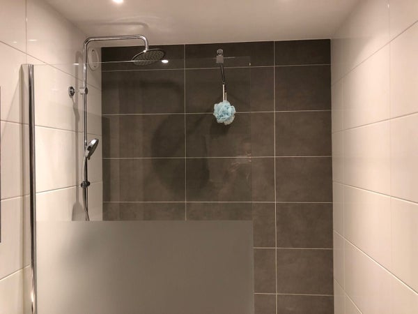 Badezimmer mit begehbarer Dusche und Waschbecken