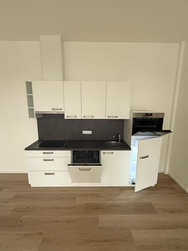 Die Wohnung ist mit einem neuen Boden, einer modernen Küche, einem Badezimmer und Vorhängen ausgestattet. Küchenausstattung: Kühlschrank mit Gefrierfach, Geschirrspüler, Ofen, Induktionskochfeld und Dunstabzugshaube. Badezimmereinrichtungen: Dusche, Waschbecken und ein separates WC. Die Wohnung hat 6 eigene Solarpanels und das Energielabel A++
