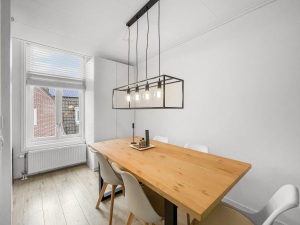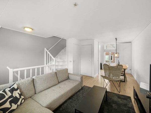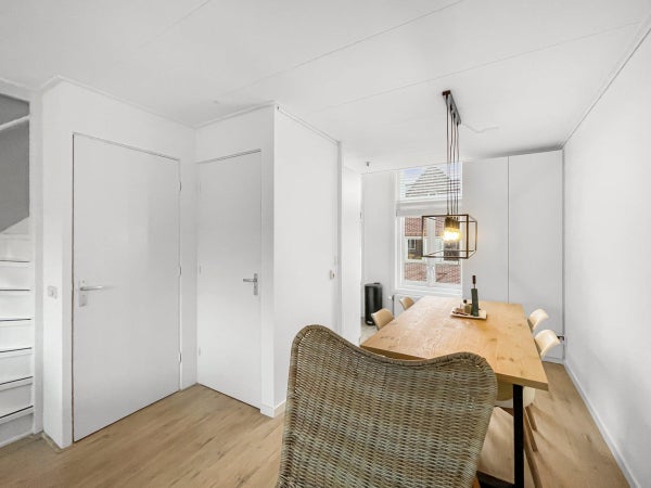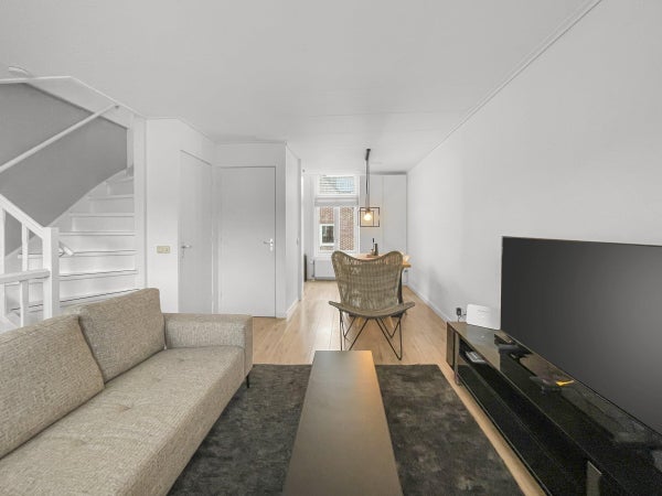In der ersten und zweiten Etage (Maisonette) in einer der schönsten Straßen in Hilversum steht diese gepflegte Wohnung zur Miete. Die Wohnung ist möbliert und verfügt über 1 Schlafzimmer, hat auf der Rückseite eine Dachterrasse nach Süden und befindet sich in einer verkehrsberuhigten Straße, die fußläufig vom Zentrum, dem Hauptbahnhof und Ausgehmöglichkeiten erreichbar ist.