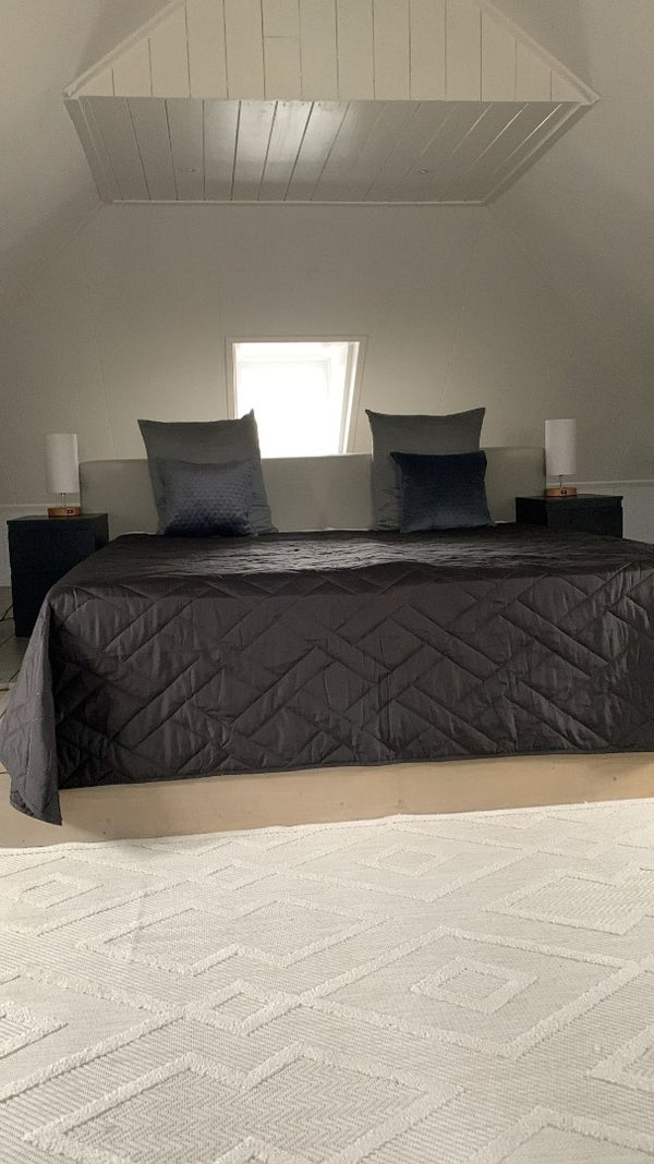 Raumaufteilung: Eingang, Treppe zum ersten Stock, Flur, Wohnzimmer mit offener Küche, WC, Schlafzimmer und geräumiges Badezimmer mit Dusche und Abstell-/Waschraum. Das zweite Schlafzimmer ist über eine feste Treppe erreichbar. Die obere Etage wurde kürzlich isoliert, renoviert und gestrichen. Für zusätzlichen Komfort steht eine Klimaanlage sowohl zum Heizen als auch zum Kühlen zur Verfügung.