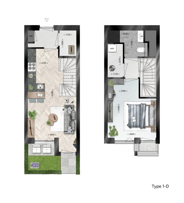 Diese Maisonettewohnung befindet sich im Erdgeschoss und im 1. Stock des Gebäudes. Mit einer Wohnfläche von 56 m2 bietet sie ausreichend Platz als komfortabler Wohnraum. Die Wohnung verfügt über ein großes Schlafzimmer von 14 m2.