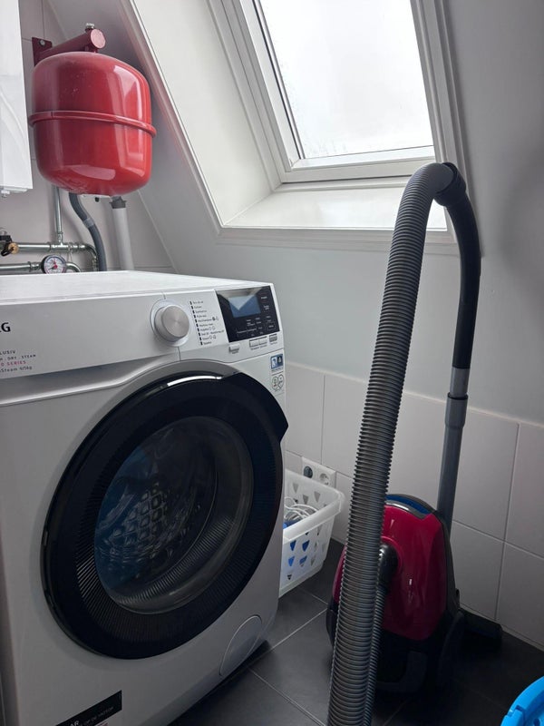 Im Flur ist eine Wasch-Trocken-Kombination installiert.