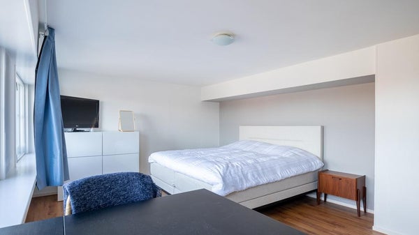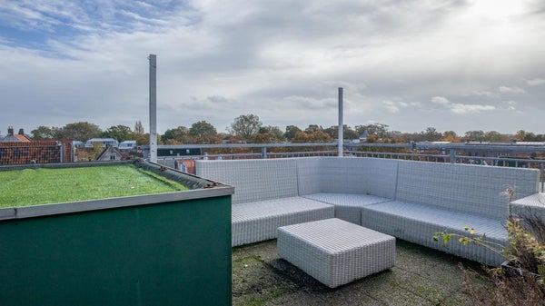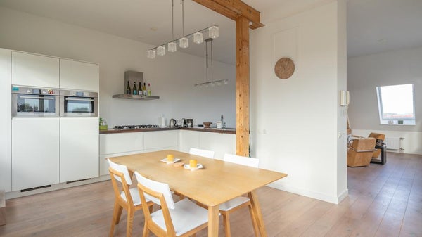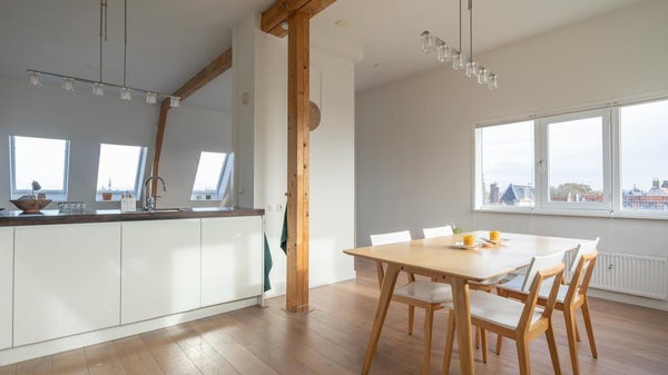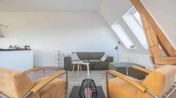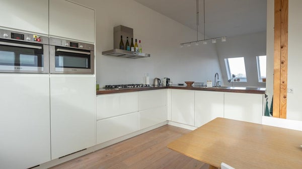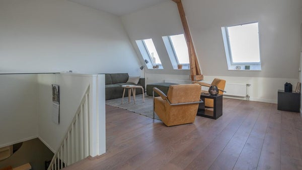 In bester Lage im historischen Leiden steht dieses wunderbare und vollständig möblierte Apartment mit einem privaten Stellplatz für kurze Zeit zur Verfügung. Die Wohnung befindet sich im 3. und 4. Stock eines sehr gut gepflegten Hauses, der Eingang kann über Treppe oder Aufzug erreicht werden. Von hier aus gelangen Sie ins Gästezimmer sowie ins Hauptschlafzimmer. Beide sind mit Doppelbetten, Kleiderschränken und mehr als genug zusätzlichem Stauraum ausgestattet. Das große Schlafzimmer bietet nicht nur einen wunderschönen Blick über die Dächer von Leiden, sondern auch einen Arbeitsplatz. Das Badezimmer ist modern und mit Toilette, Waschbecken und beleuchtetem Spiegelschrank ausgestattet. Es gibt eine Badewanne mit Dusche, und der angrenzende Technikraum beherbergt den separaten Wasch- und Trockner. Die feste Treppe führt in die oberste Etage mit dem fantastischen "Open-Plan"-Wohnen und der Wohnküche. In fast alle Richtungen haben Sie zu jeder Jahreszeit einen herrlichen Blick auf das historische Stadtviertel. Der Raum ist mit hohen Decken und vielen Fenstern außergewöhnlich hell und dennoch fühlt sich der Raum sehr komfortabel und praktisch an. Die geräumige und moderne Küche ist vollständig ausgestattet mit allen Annehmlichkeiten, darunter ein Geschirrspüler, ein Einbaukühlschrank und ein separater Gefrierschrank, ein 5-flammiger Gasherd und sogar ein Paar Backofenkombinationen mit einem Mikrowelle und einer mit Dampfunterstützung. Von der Küche aus hat man Zugang zu der einzigartigen, geräumigen und sehr schön gelegenen Dachterrasse nach Süden.