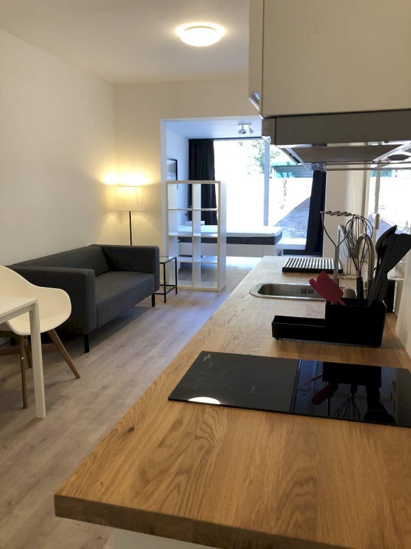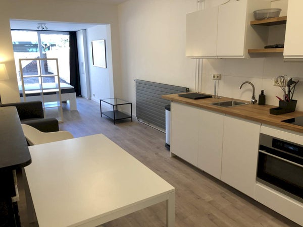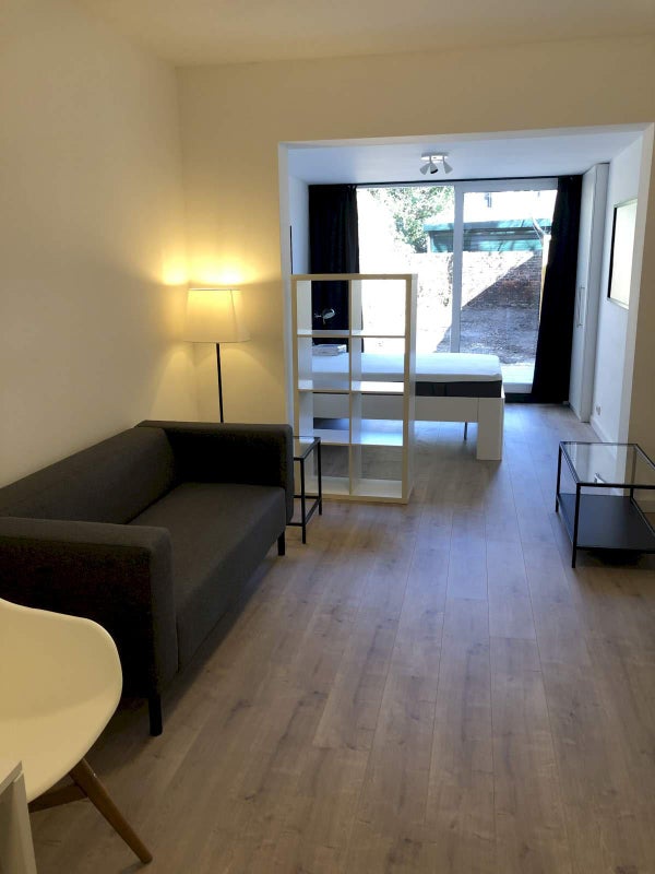 Dieses renovierte Studio im Erdgeschoss auf der Rückseite verfügt über einen gemeinschaftlichen Bereich in der zentralen Halle für die Waschmaschine. Das Studio hat eine Fläche von 32 m2, besteht aus einem Wohn-/Schlafbereich mit offener Küche, einem Bad mit Dusche, Waschbecken und WC sowie einer Terrasse und einem privaten Stadtgarten. Die Küche ist mit einem Induktionskochfeld, Dunstabzugshaube, Backofen und Kühlschrank ausgestattet. Es ist möbliert mit einem Doppelbett, Nachttischen, einem Kleiderschrank, einer Couch und einem Tisch mit 2 Stühlen. Die Miete beträgt 1.058 € pro Monat, einschließlich Heizung, Wasser, Strom, Nebenkosten und Wifi. Das Studio ist ab dem 01-02-2026 verfügbar und eignet sich für 1 Bewohner, der an einer Bildungseinrichtung wie der Universität Maastricht eingeschrieben ist.