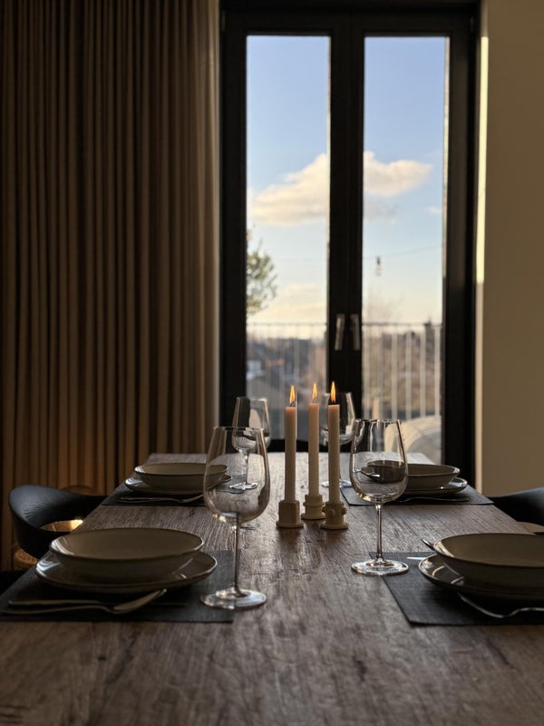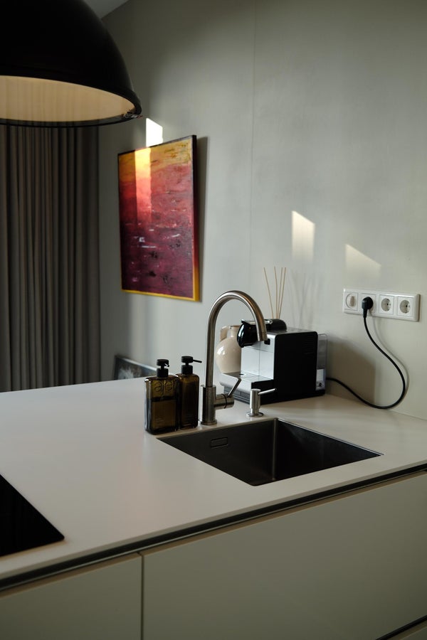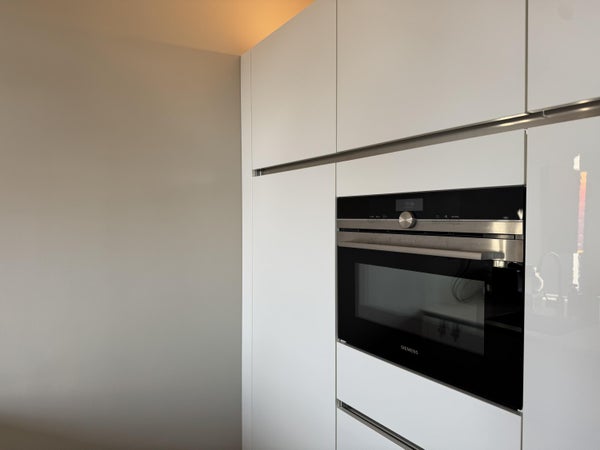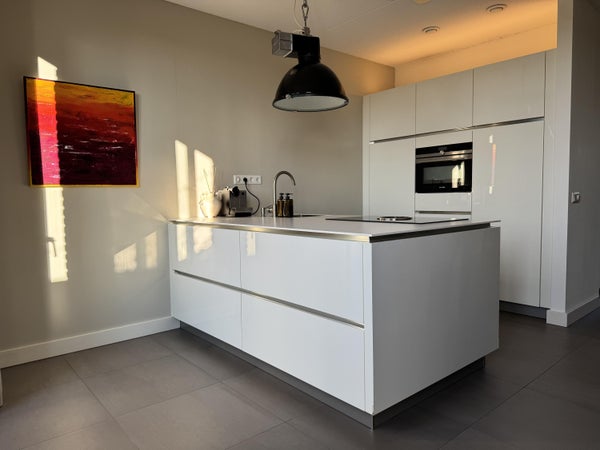 Die Küche ist stilvoll und modern gestaltet und bildet das Herz des Hauses. Sie verfügt über eine Kochinsel mit Bora-Dunstabzugssystem und einem Kombi-Mikrowelle. Die Küche ist direkt mit dem Balkon verbunden. Von hier aus haben Sie einen herrlichen Blick auf Maastricht. Sie blicken auf die Hoge Brug, die Dächer der Häuser in Wyck und die Sint Janskerk am Vrijthof.