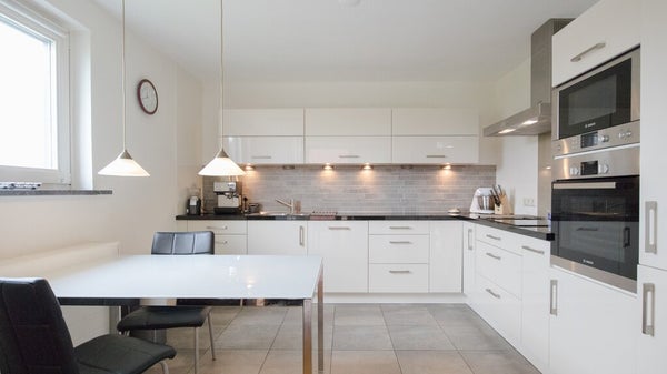 Der Eingang der Wohnung führt zu einer zentralen Halle, von der aus alle Räumlichkeiten zu erreichen sind, darunter eine geräumige separate Toilette. Das Wohnzimmer ist großzügig und dank der Ecklage wunderbar hell. Über eine Schiebetür gelangst du auf den sonnigen Balkon, wo es sich herrlich aufhalten lässt. Die moderne Küche ist offen und mit allem Komfort ausgestattet, einschließlich einer elektrischen Kochplatte mit Dunstabzugshaube, Geschirrspüler, Ofen und separatem Mikrowelle sowie einer Kühl-Gefrierkombination. Im geräumigen Abstellraum, der vom Wohnzimmer aus zugänglich ist, findest du die Waschmaschine und den Trockner.