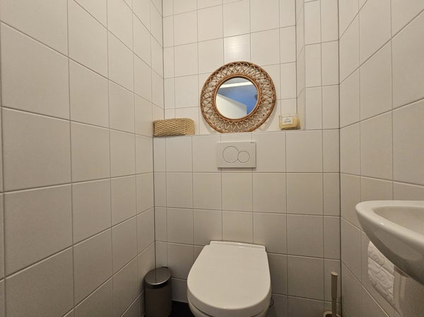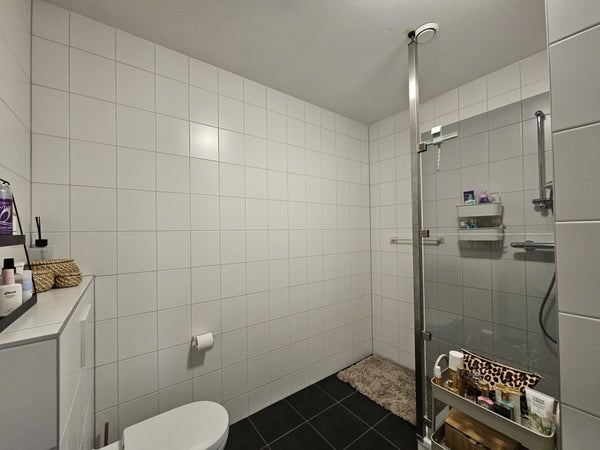 Das Badezimmer befindet sich in der Mitte des Apartments und verfügt über ein Waschbecken, eine begehbare Dusche, eine zweite Toilette und einen Handtuchheizkörper. Das Apartment befindet sich im Erdgeschoss und ist komplett mit Fußbodenheizung ausgestattet.