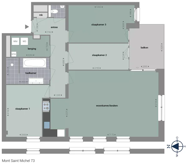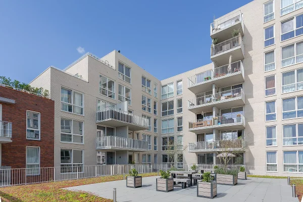 Diese schöne 4-Zimmer-Wohnung in Kop West hat eine Wohnfläche von ca. 107 m² und liegt in der Nähe des Zentrums und des Bahnhofs Noord. Die Wohnung befindet sich im zweiten Stock und bietet ein geräumiges, helles Wohnzimmer mit Zugang zu einem nach Süden ausgerichteten Balkon von 8,8 m². Es gibt drei Schlafzimmer, die sich gut als Kinderzimmer, Gästezimmer oder Büros eignen. Die moderne Küche ist mit Einbaugeräten wie einem Induktionskochfeld und Geschirrspüler ausgestattet. Das luxuriöse Badezimmer verfügt über eine Badewanne, eine ebenerdige Dusche und ein Doppelwaschbecken. Zudem gibt es ein separates WC, einen internen Abstellraum für Waschmaschine und Trockner, einen privaten Abstellraum im Erdgeschoss und einen eigenen Parkplatz in der Tiefgarage. Die Lage bietet eine gute Erreichbarkeit sowie Einkaufsmöglichkeiten und Parks in der Nähe.