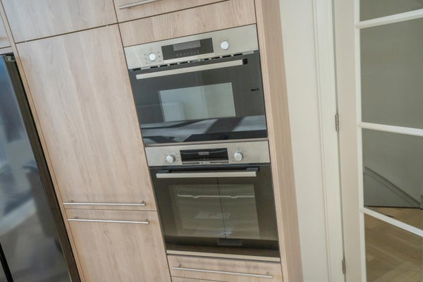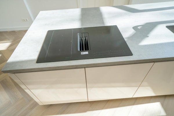 On the first floor, you enter a spacious and bright hall that leads to the impressively spacious living/dining room. This spacious living area is characterized by its many windows and beautiful light. The luxurious open kitchen is fully equipped with high-quality built-in appliances. From the kitchen, you also have access to a lovely terrace. A great place to relax or dine outside.