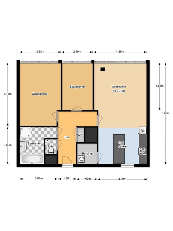 Das Apartment ist über einen gut gepflegten Gemeinschaftseingang mit Galerie zugänglich. Der Flur bietet Zugang zu allen Räumen und beinhaltet eine separate Toilette.