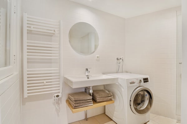 Jedes Appartement ist vollständig eingerichtet und von Zuiver gestaltet. Die Betten sind Boxspring-Betten von Swiss Sense. Die Interieurs sind neutral und modern, aber dennoch gemütlich im urbanen Stil.
