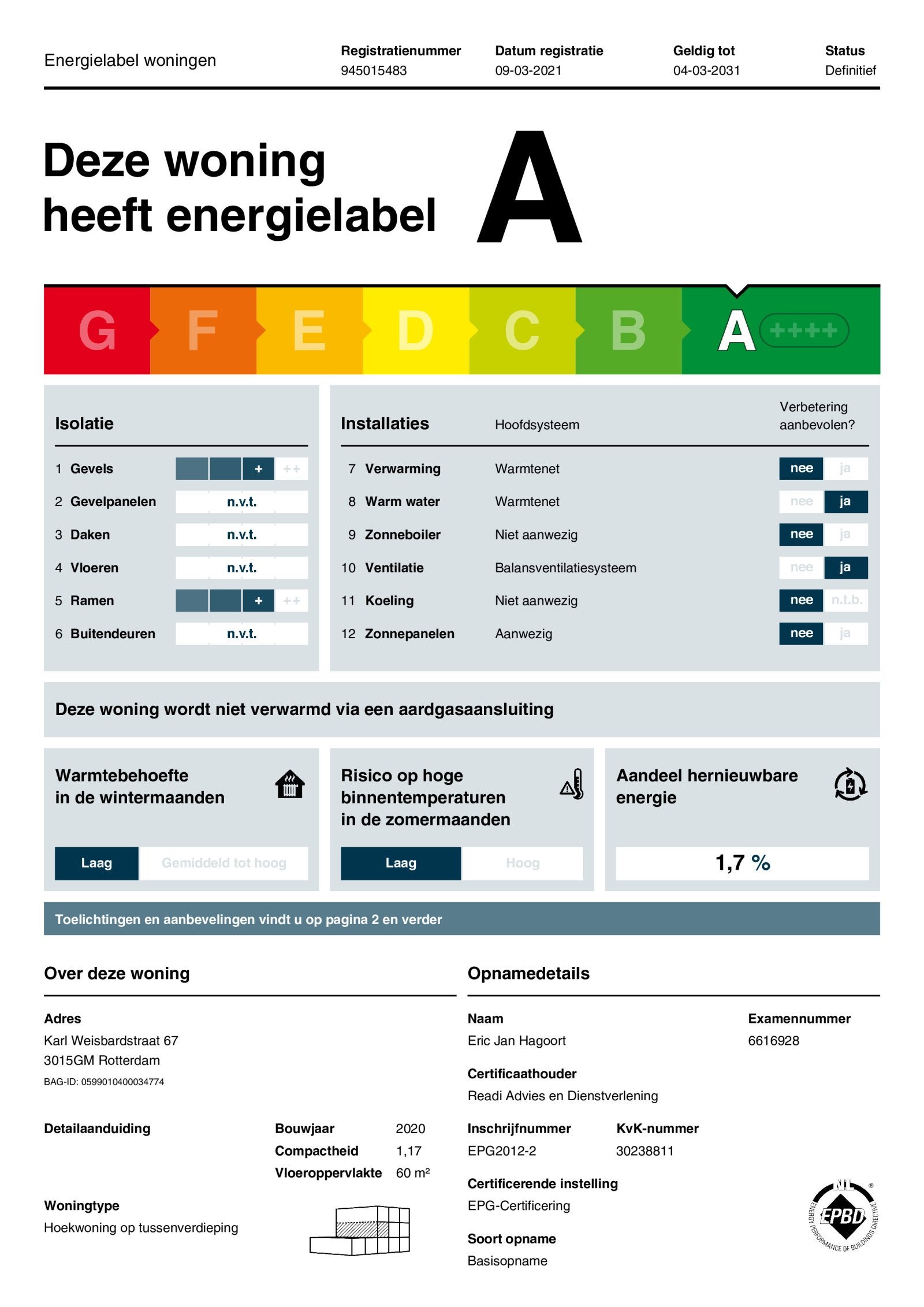 Zur Miete: Etagenwohnung Karl Weisbardstraat 67 in Rotterdam
