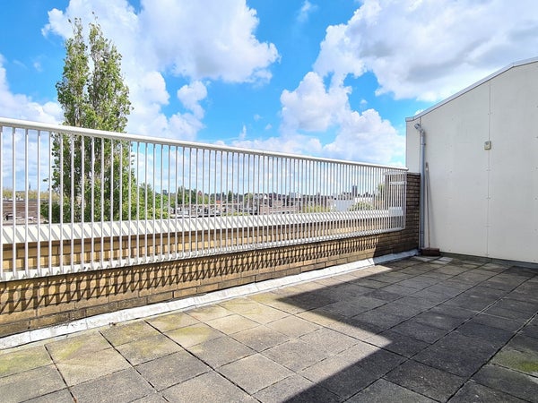 An einem schönen Kanal mit freiem Blick liegt diese geräumige (100 m2) und sorgfältig gepflegte Wohnung im 5. (= obersten) Stock. Zwei geräumige Schlafzimmer, eine gut ausgestattete Küche, helle Eichenparkett und schlichte Wände. Sehr private Dachterrasse.