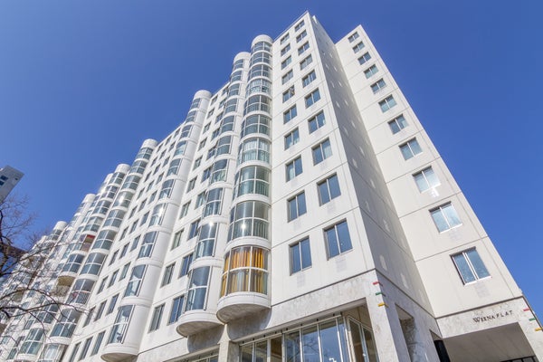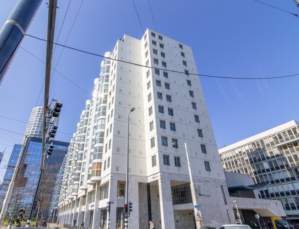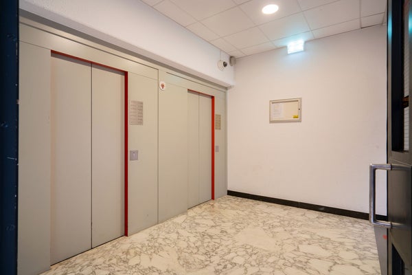 Das Gebäude kann sowohl über die Vorder- als auch die Rückseite des Weenaflat betreten werden. Im verschlossenen Haupteingang befinden sich die Briefkästen und ein Klingel-Panel mit Video-Telefon. Danach das schöne, kürzlich renovierte Foyer mit Marmorfußboden und Oberlicht. Mit dem Aufzug haben Sie Zugang zu Ihrer eigenen Eingangstür im 7. Stock.