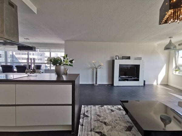 Das Wohnzimmer mit einer sehr luxuriösen offenen Küche verfügt über einen geräumigen Sitz- und Essbereich und ist vollständig möbliert. Vom Wohnzimmer aus haben Sie einen herrlichen Blick über das Zentrum von Rotterdam und die beliebten Einkaufsstraßen.