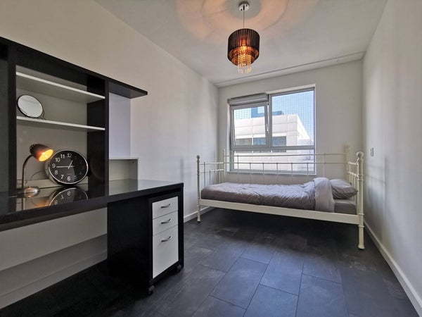 Das Schlafzimmer befindet sich an der Vorderseite des Gebäudes und bietet einen Blick über das Zentrum von Rotterdam. Dieser Raum verfügt über ein hochwertiges SwissSense Doppelbett und einen Kleiderschrank.